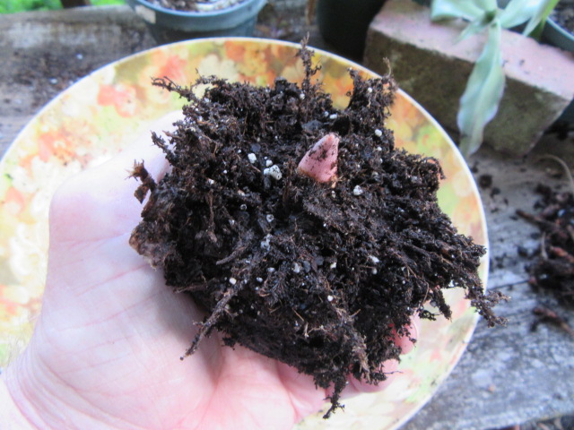 On July 16 I decided to do something about all the Amorphophallus plants in this pot. I have no idea if this is “allowed” or not at this time of the year, but sometimes you just have to do what you have to do. I am not an Aroid expert, so I have a good excuse if I screw up.