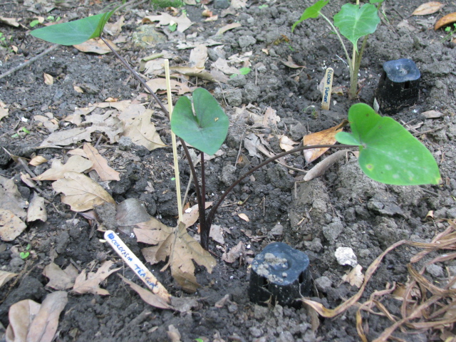 Colocasia ‘Tea Cup’ on 9-28-09, #41-10. Photo showing beautiful dark purple stems.