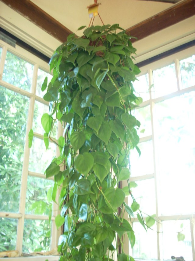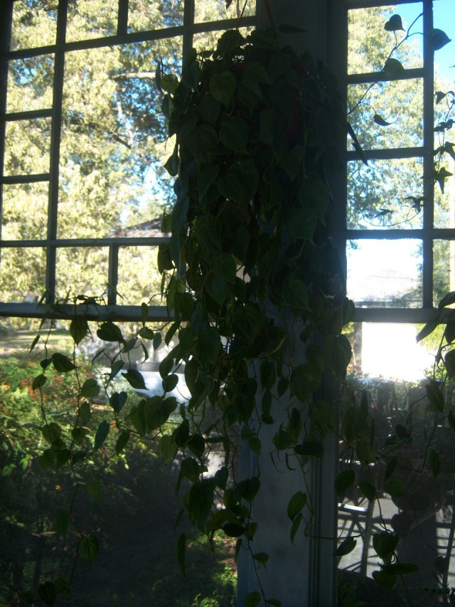 Philodendron hederaceum var. hederaceum hanging in the west sunroom at the mansion on 10-24-11, #83-16.