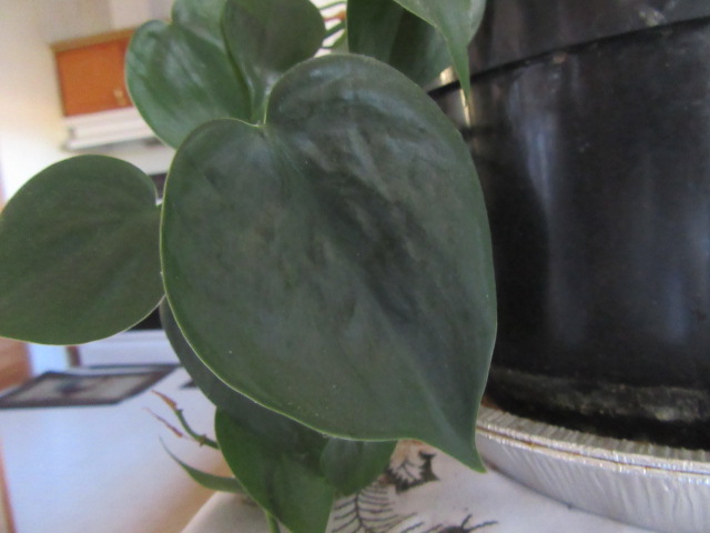 Suzanne had bought two Philodendrons from Lowe’s before she became ill in January 2009 (She passed on March 30, 2009). One had shiny dark green leaves and the other had velvety leaves with kind of maroon color. The tag with one with green leaves said Philodendron scandens and the other said Philodendron scandens micans.