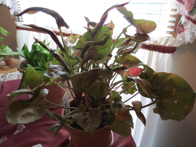 I bought my first Syngonium podophyllum from Lowe’s in Greenville, Mississippi while living at the mansion in Leland in June 2012. It was labeled ‘Exotic Allusion Nephthytis’. In October I bought two more, ‘Cream Allusion’ and ‘Maria Allusion’. I think the last two were incorrectly labeled but I found the correct name on the Exotic Angel website from Costa Farms. For a while, I thought the ‘Exotic Allusion’ was also mislabeled and was a ‘Plum Allusion’ instead. Now ‘Plum Allusion’ isn’t available.