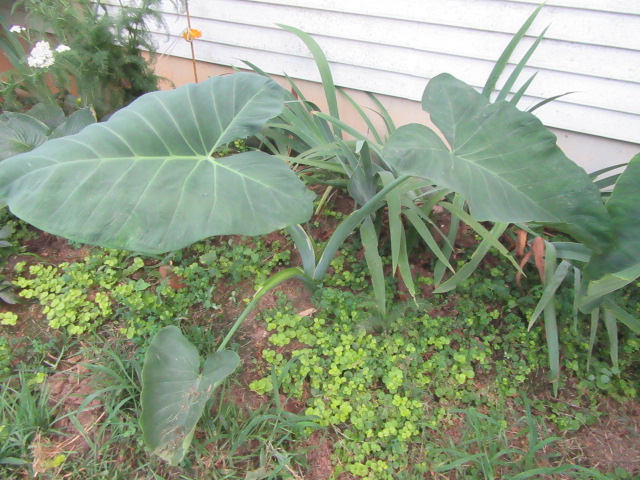 Robert also said he was mistaken. He said instead of this plant being Xanthosoma sagittifolium it was either a Xanthosoma atrovirens or Xanthosoma robustum. He said X. sagittifolium doesn’t grow variegated leaves but X. atrovirens does… But, the X. robustum doesn’t spread out like this plant is. He also said that it was an X. sagittifolium I would have a lot of offsets…