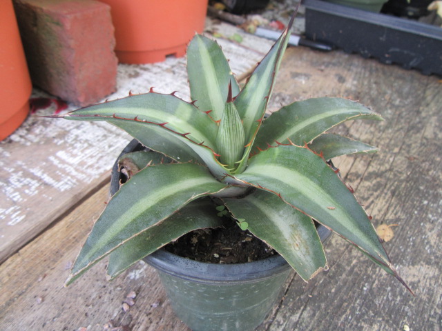 I bought this Agave in July 2016 from a local Amish Greenhouse, I think probably Mast’s. Even though I always say I am not going to buy plants without labels AGAIN, I always wind up doing just that. This Agave was one of them. I looked off and on for its ID but decided I better make a decision so I could make this page (on December 1, 2017).