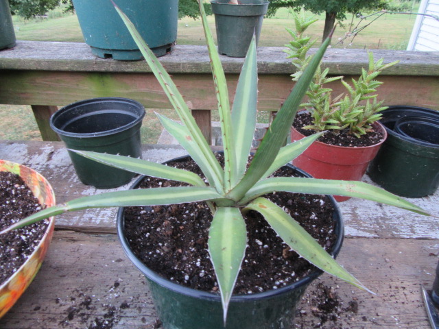 The Agave lophantha made it through another winter and I decided to put it on the back porch for 2019. It will get full sun all day here and maybe it will do better and begin to look more like what an Agave lophantha should look like.