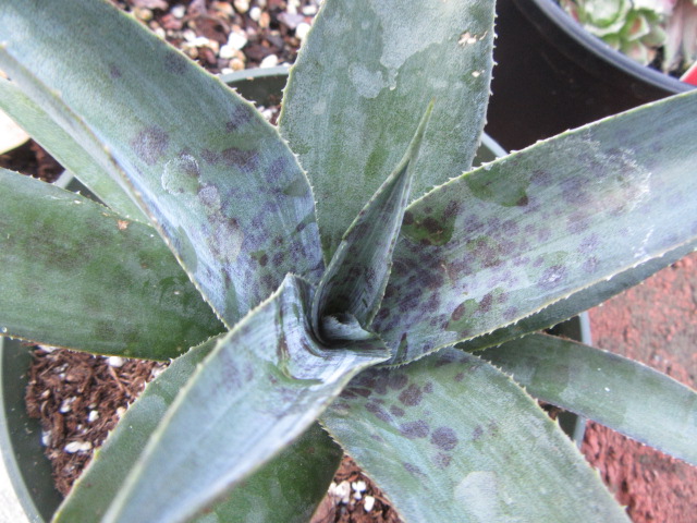 Sorry to hear about the leaves on your Mangave ‘Moonglow’. I hate it when something like that happens. Its leaves must be more fragile.