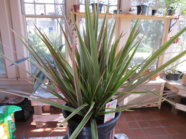 This is the plant labeled Dracaena marginata ‘bi-color’ with tri-colored leaves on 2-17-13, #139-31.
