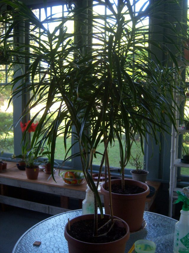 When many people buy small cute plants at the garden center they don’t realize what they can become. Dracaena are definitely one of those plants. After a while, those cute little plants become trees and can look somewhat strange. The leaves growing along the stem (or trunk) will fall off leaving a slender stem with a tuft of leaves at the top.