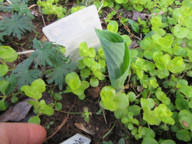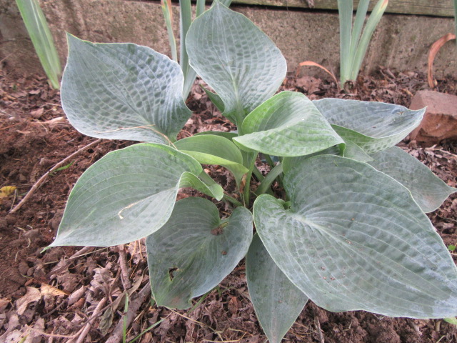 The Hosta ‘Abiqua Drinking Gourd’ growing at a snail’s pace on April 7.