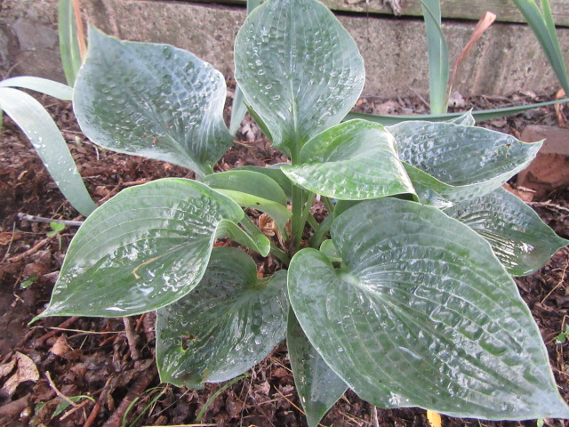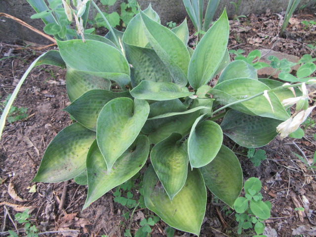 I brought this Hosta home from Lowe’s on April 23, 2017. It is a unique cultivar with heavily corrugated and cupped blue-green leaves. The leaves are thick and slug-resistant.