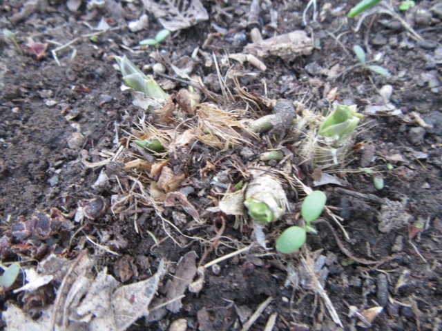 This winter wasn’t as cold as last and we had more snow. We had mild temperatures followed by snow and cold. Then the weather would be nice and the snow would melt then we would get snow again. This happened several times and it is not necessarily good for many perennials. I went out to check on the perennials, mainly the Hosta, on March 7 then again on March 10. There were several Hosta I couldn’t see sprouting yet. I thought that was a little weird. I checked again on March 24 and found more soil had covered one of the Hosta, so I thought maybe that’s what happened to the others I couldn’t find. As it turned out I was looking behind their labels instead of in front of them. All my plant labels are in front of the plants so it was weird one group had ther labels in the rear… Hmmm…