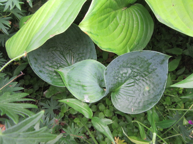 I really like the thick, heavily textured, and cupped leaves of this Hosta.