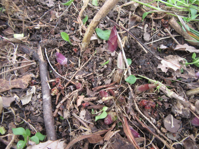 Spring was in the air when the above photo was taken on March 30 and the Hosta have been “working on it”. Most of them have been poking out of the ground for a while and now are beginning to turn green. They are a bit slow sometimes when cool temps linger, but as soon as it gets warm enough they will start growing better. It seems like they are waiting for the perfect opportunity.