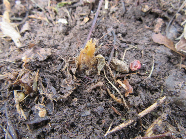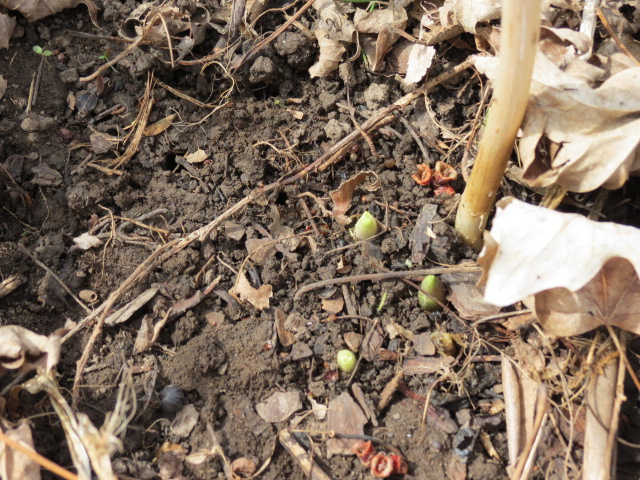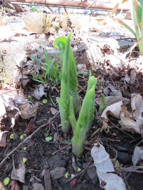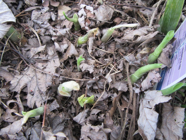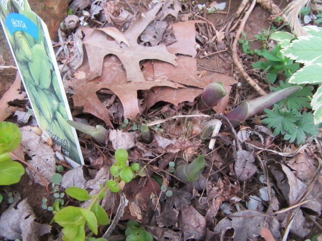 After a very cold early January, I was glad to see a few Hosta peeking through as I dug around in the leaf mulch on March 3.