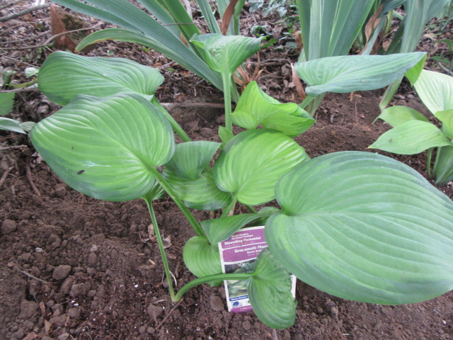 Then, on March 24, I checked on the Hosta that I couldn’t see before. That’s when I realized I had been looking about a foot to close to the old fish pool. Not only did I find ‘Guacamole’ #2, I also found the other Hosta I couldn’t find before. They were in front of their labels instead of behind them…