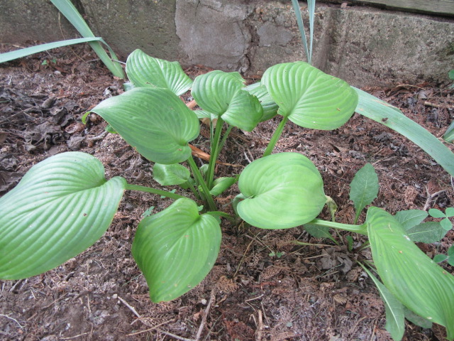 When I was taking photos on April 7, I decided it was a good time to put the two clumps of Hosta ‘Guacamole’ back together. That will be much better.