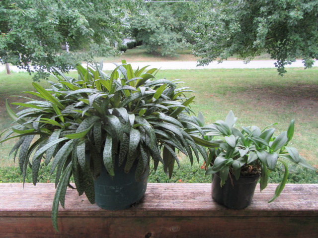 Ledebouria socialis (var. violacea) on the left at 22″ wide and L. socialis (var. paucifolia) at 17″ wide on the right on 8-14-21, #826-34.