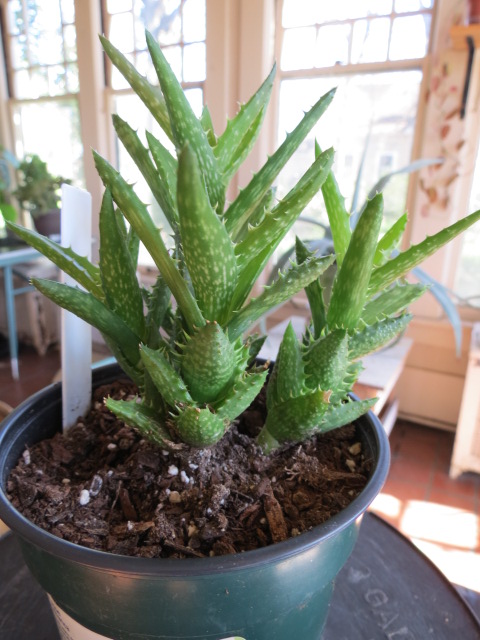 I decided it was time for the Aloe juvenna to be in a larger 6 1/2″ diameter x 5 1/2″ tall pot.pot.