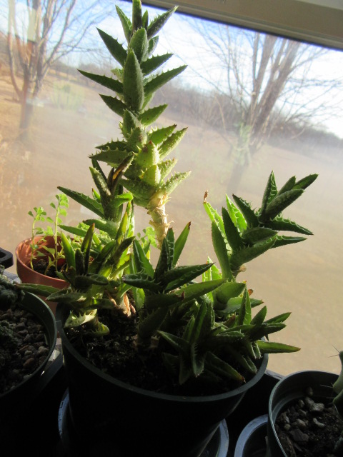 The Aloe juvenna did very well over the winter on the table with most of the other cactus and succulents in my bedroom. This is a south-facing window, so they get plenty of light.