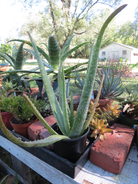 I moved back to the family farm in mid-Missouri in February 2013. I had sold the mansion to a group of folks that bought it and turned it into a nice bed and breakfast. I had to leave behind several hundred plants but I did bring most of my succulents. Choosing which Aloe vera to bring was tough, but I couldn’t bring the larger, original plants with me. SO, I chose a good-sized o