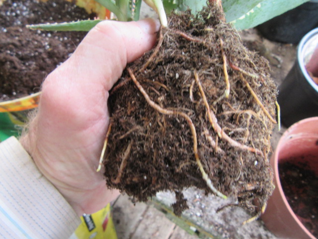 Aloe x ‘Amethyst’ root system on 6-4-25, #1052-2.