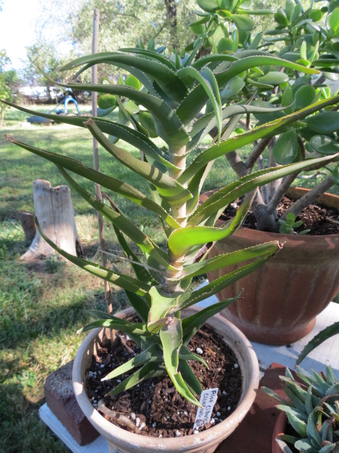 The Climbing Aloe is a pretty neat plant that will grow and keep growing. In the wild, it grows in trees and on fences or samples along the ground. if you grow this plant in pots like I did, you need to provide support. It does not have tendrils like a pea to cling so you will need to tie it to a stake or somehow provide something for it to climb through.