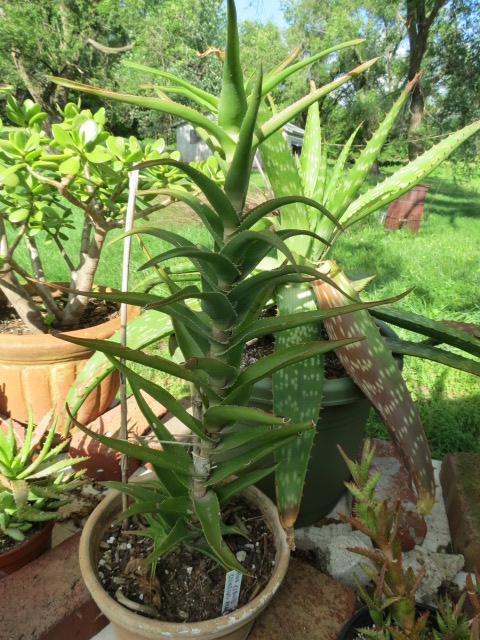 Apparently, taxonomists have decided that it was time to have a closer look at the Aloe genus. Tree and scrambling Aloes have been reclassified and now tree Aloes are in the newly created Aloidendron and scrambling Aloes are in the new Aloiampelos genus. The document I read was full of taxonomic language that I can’t even understand. A few Aloe species were also renamed and put in the resurrected Kumara genus.