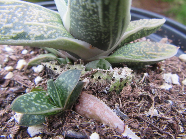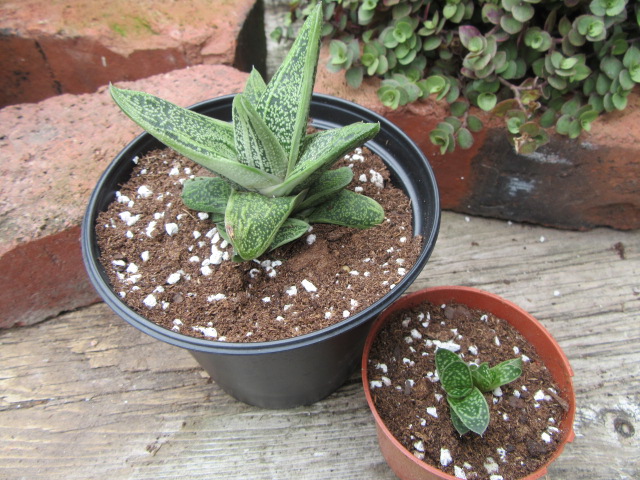 I finally repotted The Gasteria ‘Little Warty’ and removed the netting surrounding the plug. The offset fell off so I decided to put it in its own pot.