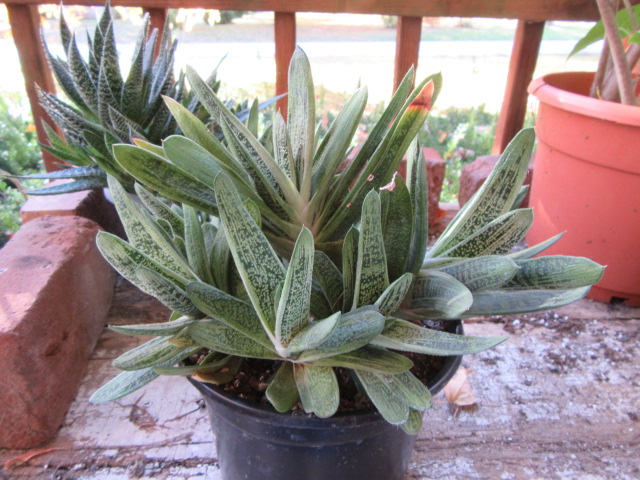 I moved the potted plants inside on October 14 because a frost was in the forecast. Gasteria ‘Little Warty’ measured 6″ tall x 9″ wide… It seemed to have its ups and downs over the summer but it is still alive.