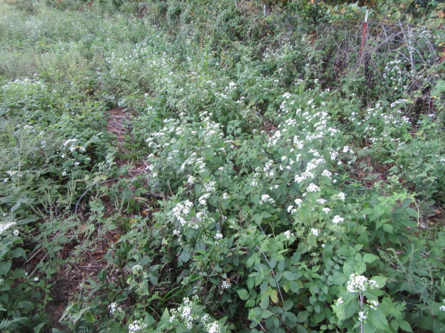 There are individual small groups here and there on the farm but several very large groups as well. They have nice “Ageratum-like” flowers. Like many wildflowers, however, it is a poisonous weed.