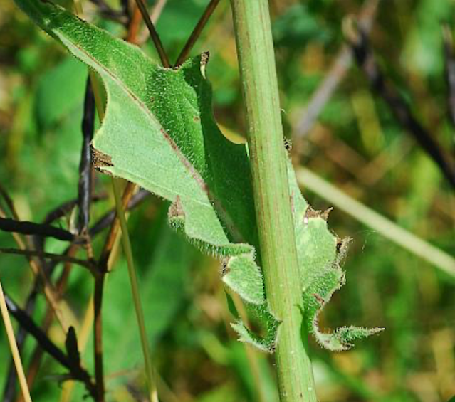 The above photo of a Cichorium intybus stem leaf is from the Missouri Plants website. Missouri Plants is published on the internet at http://www.missouriplants.com/index.html. Photo used by permission and retrieved on February 9, 2024.
