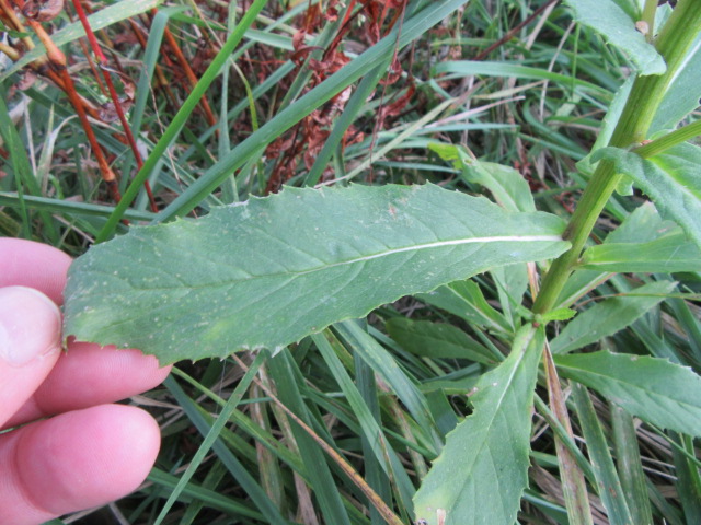 Erechtites hieraciifolius (American Fireweed, ETC.) leaf adaxial (upper surface) on 10-1-22, #913-10.