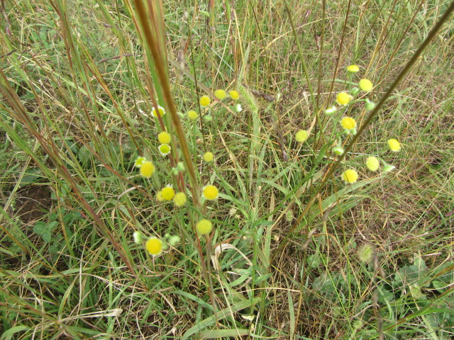 I found this cluster of Erigeron annuus in the south hayfield that had lost their ray florets…