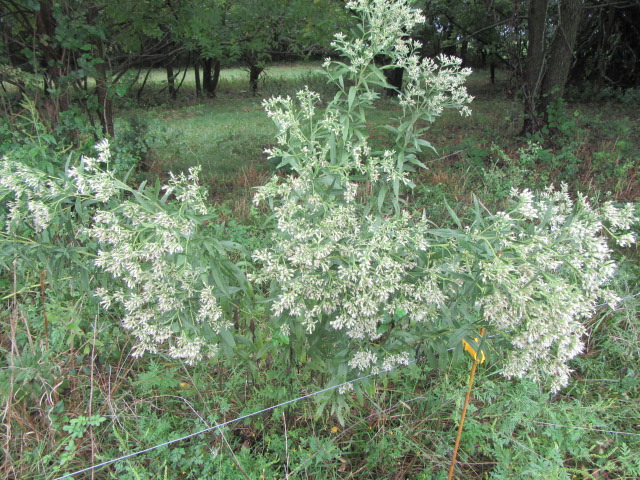 There are quite a few small colonies of Eupatorium altissimum growing on the farm in Windsor, Missouri in Pettis County (Henry County is across the street). You can find them along back roads, fence rows, and just about anywhere around here. I have identified three species of Eupatorium here on the farm and E. serotinum and E. altissimum were somewhat difficult to tell apart if it weren’t for the leaf petioles (leaf stems). Eupatorium perfoliatum is easy to tell because of its leaves.