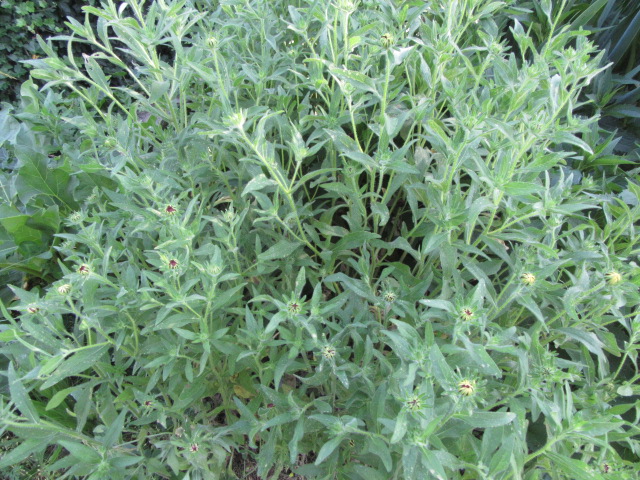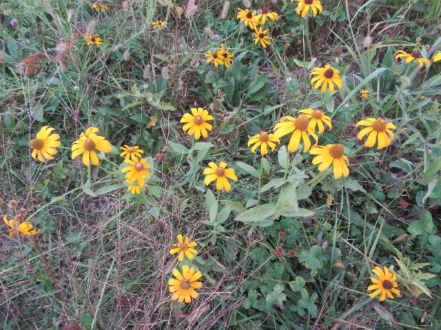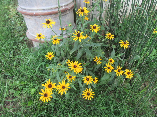 Rudbeckia hirta in front of the chicken house next to the Equisetum hyemale (Horsetail) on 7-9-17, #355-40.