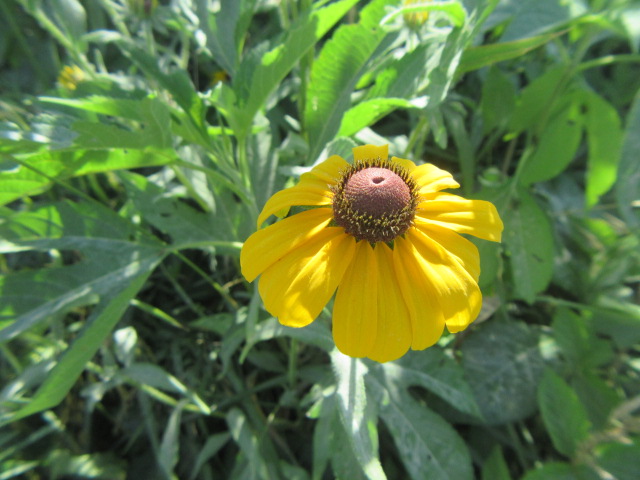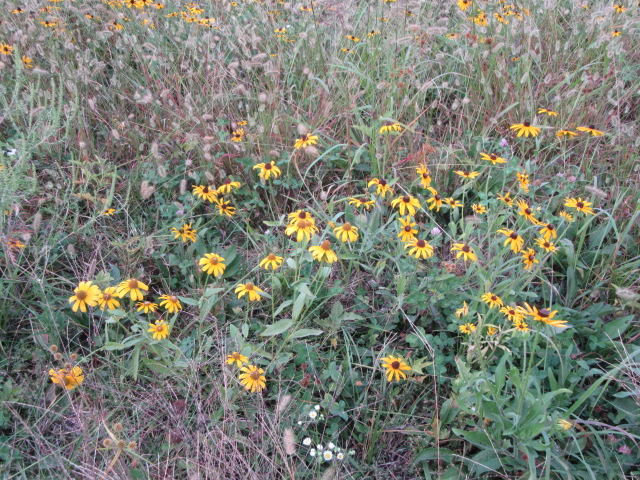 I moved the Rudbeckia fulgida var. sullivantii ‘Goldstrum’/’Goldsturm’ to the northeast corner bed next to the old foundation (where my grandparents lived). There was already a small colony of native Rudbeckia hirta there.