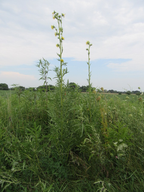 I first noticed a colony of Silphium laciniatum (Compass Plant) along a back road south of town in 2019 but they were small and not flowering at the time. The next thing I knew they had been mowed off. A while later, on July 17, I saw them growing along another back road. This time I took A LOT of photos. They are a really neat plant and I have been tempted to take more photos but I really think I have enough.