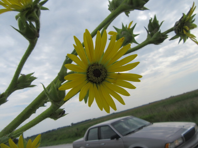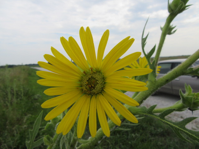 All but the first few photos on this page were taken on a short back road south of town I take when I visit a good friend of mine. I don’t know the name of the road, I just use it. There are more Silphium laciniatum growing along this road than you could imagine from one end to the other.