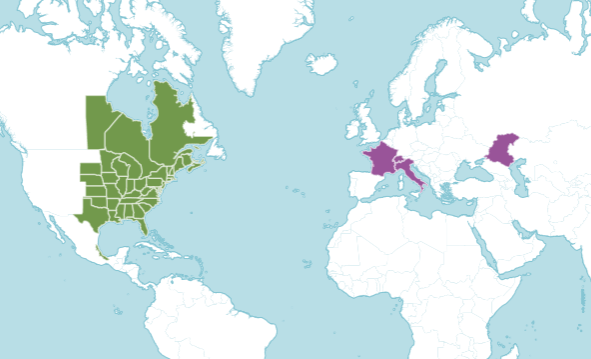 The map on iNaturalist shows where members have made observations. Anyone can join and it is a great website to confirm and share your observations. The maps on iNaturalist are continually updated as members post new observations.