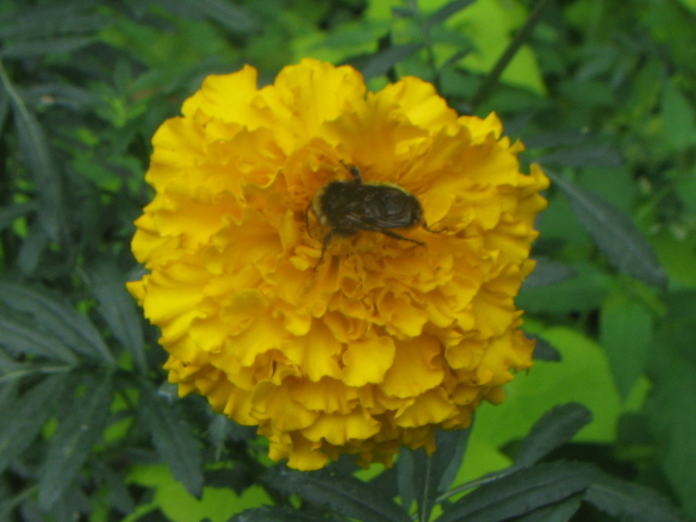 Bumblebee on a flower of a Marigold ‘Crackerjack’ on 9-17-09, #35-28.
