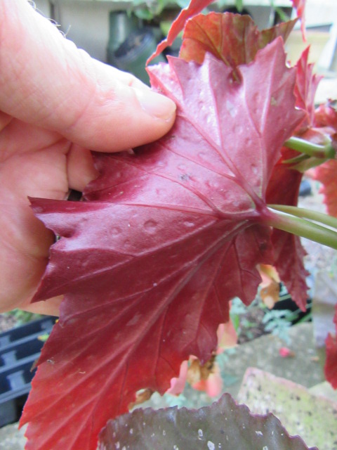 Begonia ‘Little Miss Mummy’ (aka. ‘Fannie Moser’), leaf underside. on 8-29-17, #360-23.