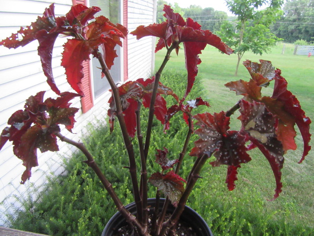 All the Begonias made it through the winter in the basement with flying colors. When temperatures warmed up enough, I moved the plants back outside where they usually are for the summer. I had been busy doing this and that and didn’t get photos of the Begonias earlier. I could have cut the Begonias back, but I decided to let them grow as they were. They do need to be re-potted, though.