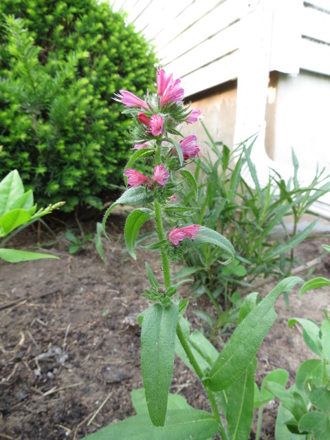 I bought my Echium amoenum in the spring of 2013 from Ron Hort, an Ebay seller from Arkansas. I had ordered plants from him when I lived in Mississippi and was very pleased. It already had a flower, so it was getting off to a good start. They did very well through the summer and produced a lot of flower spikes about 20″ tall. The long, narrow lance-shaped leaves are somewhat fuzzy. This plant is considered a tender perennial or biennial. Although early deadheading will encourage continuous flowering, a few should be left for reseeding. I’m not sure if Red Feathers is a common name or a cultivar name.
