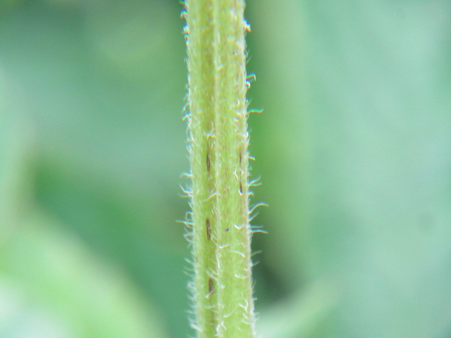 Ribbed hairy stems… Showing the hairs are spreading rather than pointing downward (retrorse) or upward (antrorse).