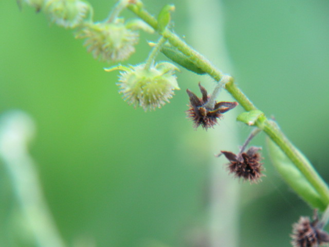 The globose 4-lobed ovaries turn into schizocarps. 🙂 OK, let’s make it simple… The fruits are 4-lobed which divide into 4 nutlets when ripe. The fruit is covered with hooked bristles allowing them to cling to clothing or passing pedestrians and the fur of mammals, such as your dog, deer, bears, raccoons, etc. when dry. You get the picture…