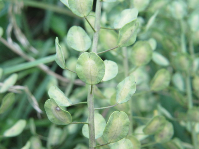The margins are broadly winged and there is a notch at the tip. The silicles are 2 locule (2 sections) which usually contain 3-8 seeds each. The seeds are oval with one end being more rounded and are brownish, grayish, or black. The seeds have odd raised concentric ridges that some say resemble fingerprints…