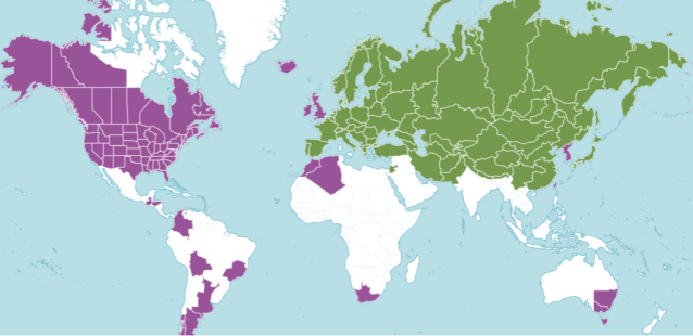 The above distribution map for Thlaspi arvense is from Plants of the World Online. Areas in green are where the species is native and purple is where it has been introduced. The map on the USDA Plants Database is about the same.