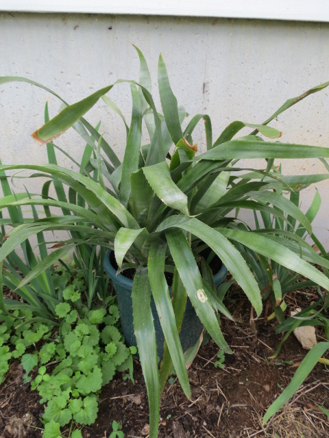 The Billbergia nutans was happy to get back outside after spending the winter in the basement. They need to be tidied up a bit…