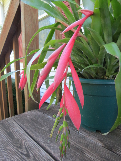 Billbergia nutans on the front porch on 4-22-19, #561-6.