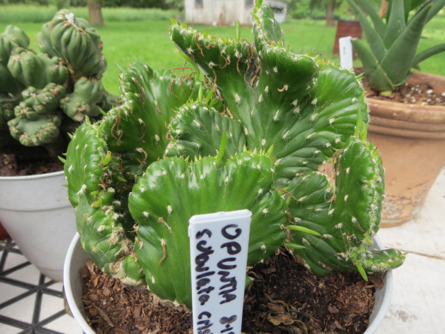 Other than their appearance, their cultural requirements are very similar to the “normal” Austrocylindropuntia subulata. The species as a whole are a semi-hardy cactus that does NOT like temps below 25° F (-4°C). They prefer their night temperatures not to fall below 40° although the species can tolerate some light frost. Personally, I would not recommend the cristate or monstrose forms to be outside much under 40° F. I grow mine in pots so I can easily move them inside. Even though some cactus can survive a frost, some species may scar from it. Well, I guess I am kind of paranoid when it comes to cold weather since I have never lived anywhere it doesn’t frost or freeze during the winter.