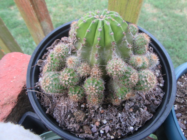 The Echinopsis ‘Rainbow Bursts’ is enjoying another summer on the back porch. The offsets keep getting bigger.